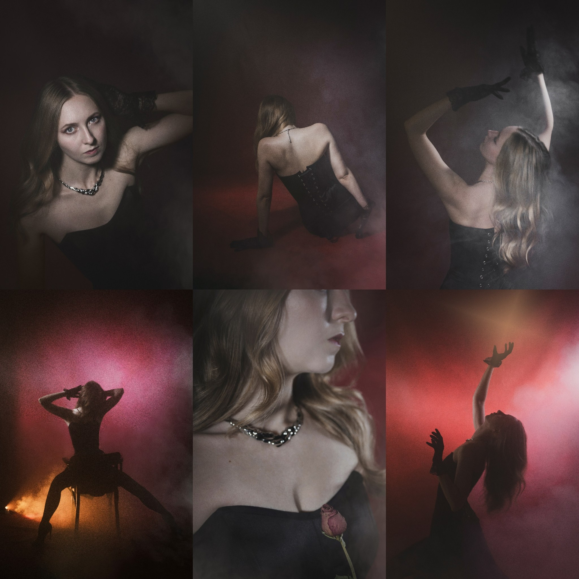 2-ч формат без спешки: несколько образов, разные световые схемы (в т. ч. силуэты), несколько локаций в интерьере, дым-машина и др.